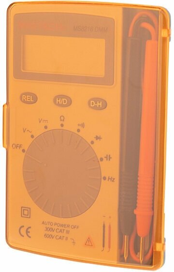 Субкомпактный мультиметр профессионального уровня. Его легко носить в нагрудном кармане рубашки, работает от батареек LR44, весит всего 85г и при этом еще и умещается в защитный мини кейс. Самый маленький и легкий, с широким спектром функций и специальным отделением для щупов.