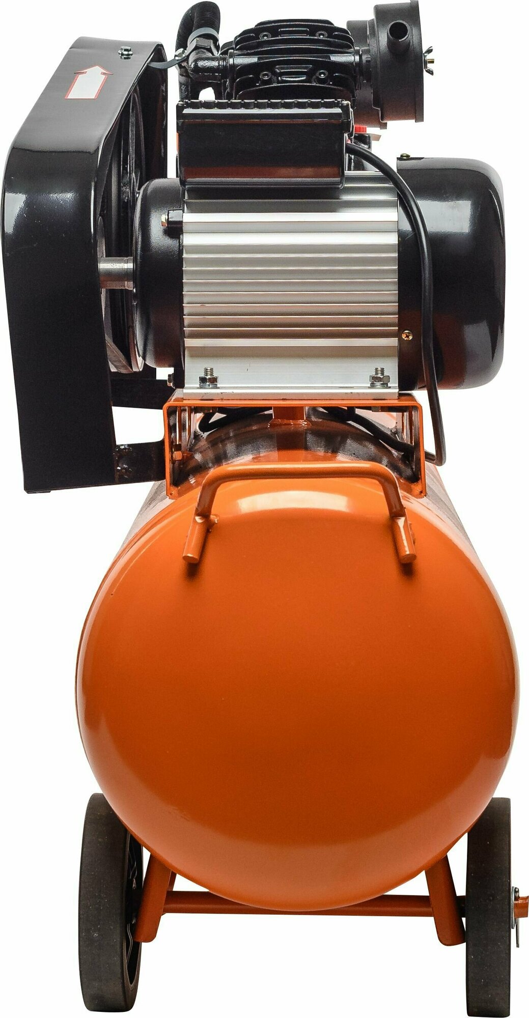 Регулировка давления. Предохранительный клапан. Защита от перегрева. Манометр. Два колеса и ручка для удобства транспортировки.