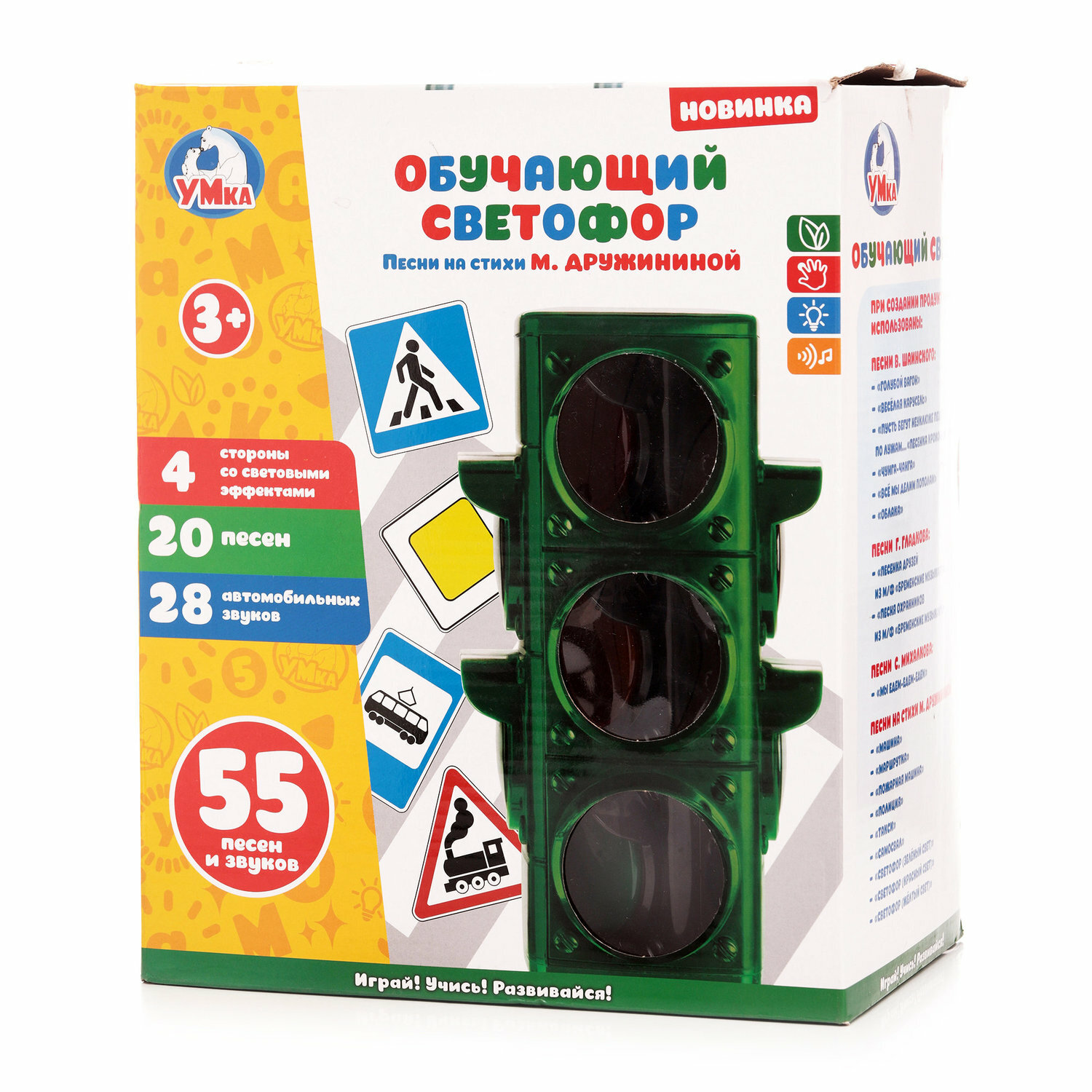 Игрушка развивает мелкую моторику рук, логическое мышление, память и музыкальный слух. Помогает освоить основы правил дорожного движения.