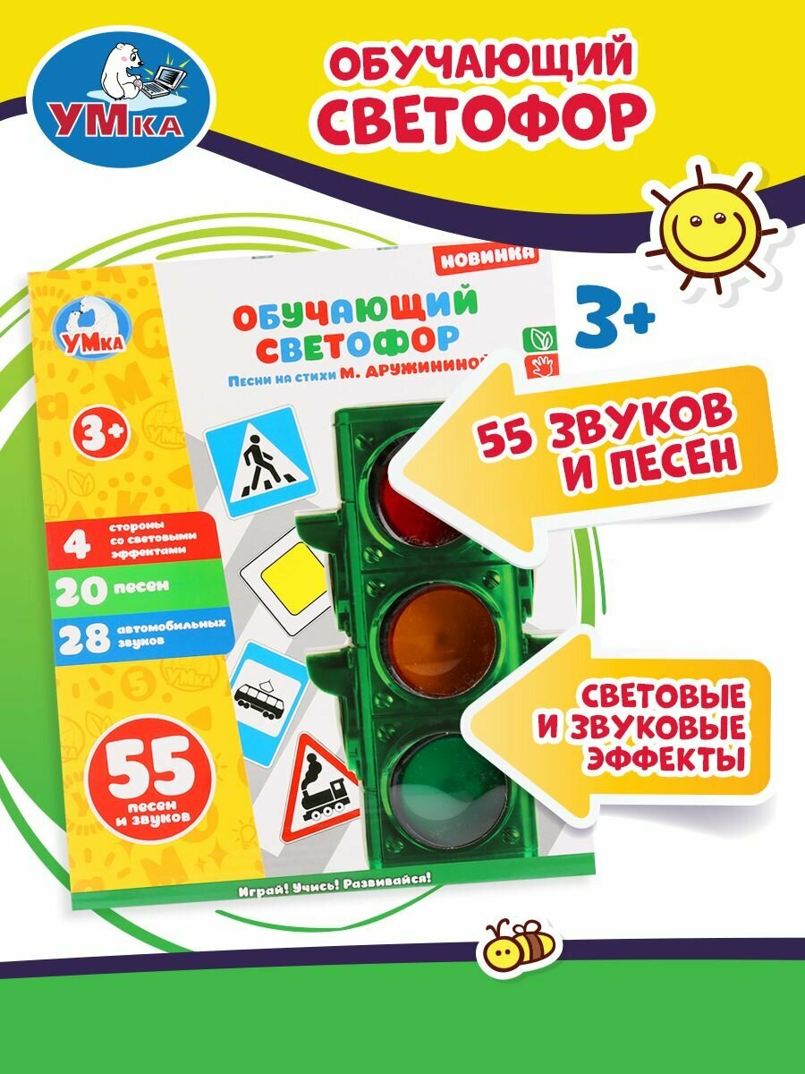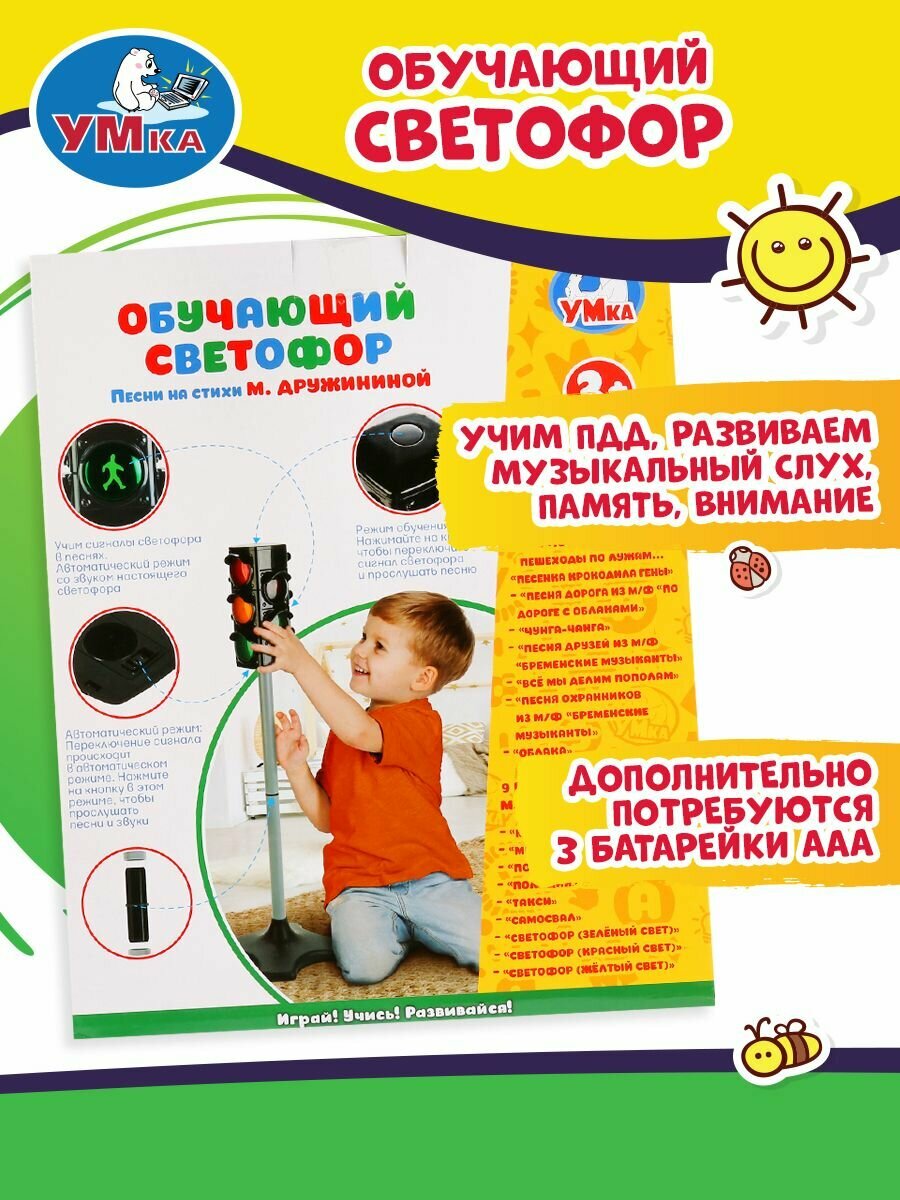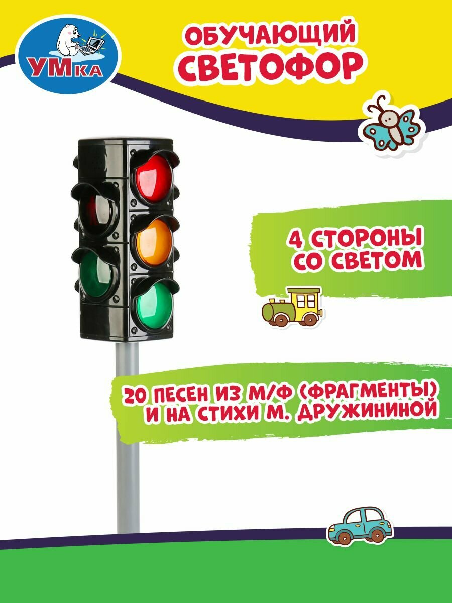 Развивающая игрушка «Умка» Обучающий светофор — это интерактивная игрушка, которая поможет ребенку освоить правила дорожного движения.