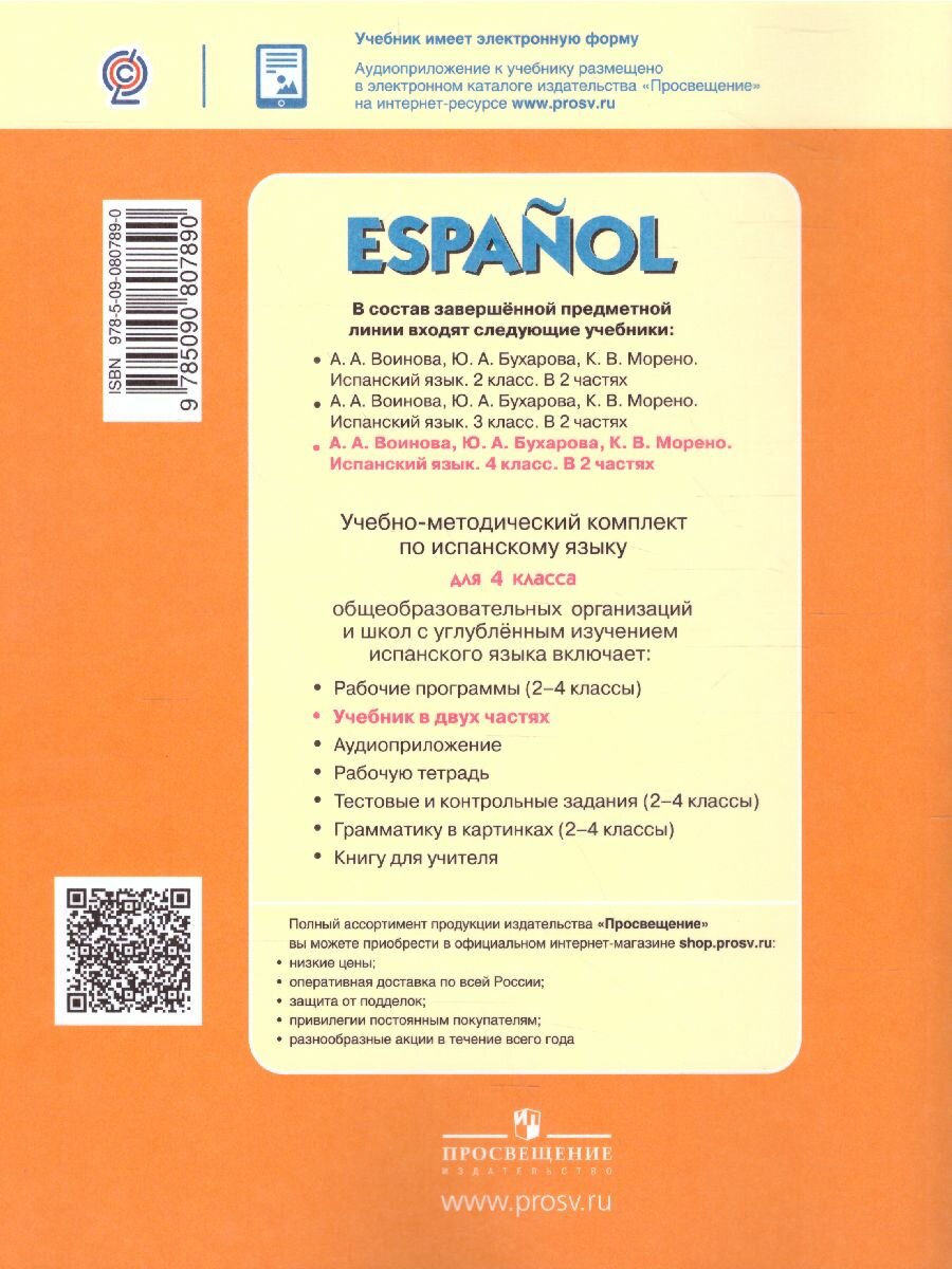 Учебник "Испанский язык. 4 класс. В двух частях" завершает линию учебников для начальной школы общеобразовательных организаций и школ с углублённым изучением испанского языка.