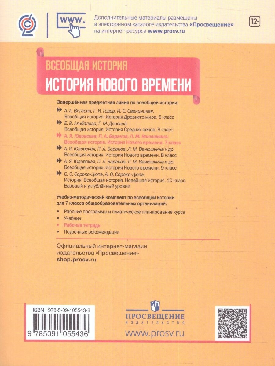 История Нового времени. 7 класс. Рабочая тетрадь (Юдовская Анна Яковлевна, Баранов Петр Анатольевич, Ванюшкина Любовь Максимовна); Просвещение, 2023