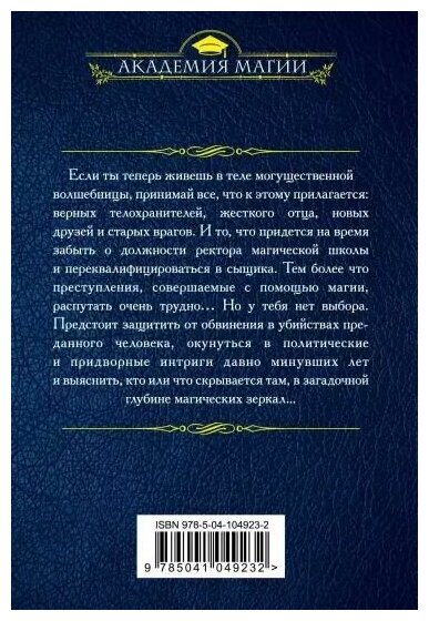 Если ты теперь живешь в теле могущественной волшебницы, принимай все, что к этому прилагается: верных телохранителей, жесткого отца, новых друзей и старых врагов. И то, что придётся на время забыть о должности ректора магической школы и переквалифицироваться в сыщика. Тем более что преступления, совершаемые с помощью магии, распутать очень трудно… Но у тебя нет выбора. Предстоит защитить от обвинения в убийствах преданного человека, окунуться в политические и придворные интриги давно минувших лет и выяснить, кто или что скрывается там, в загадочной глубине магических зеркал...