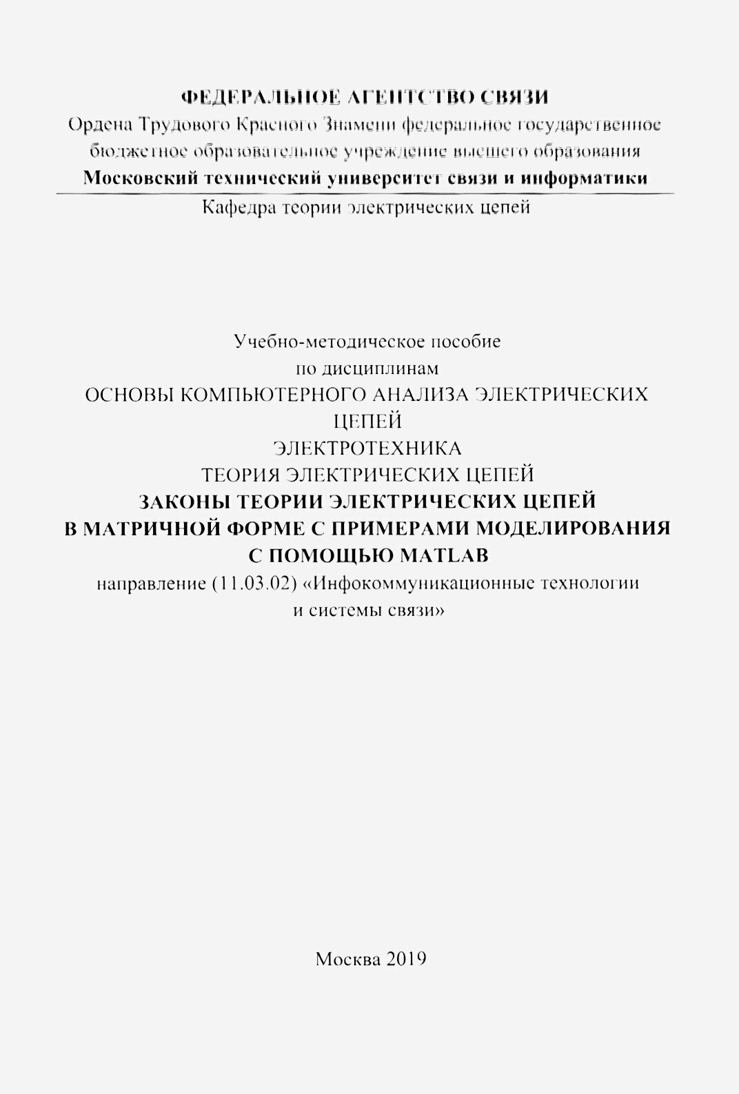 Настоящая работа является учебно-методическим пособием по использованию матричных методов расчета и моделирования на MATLAB электрических процессов.