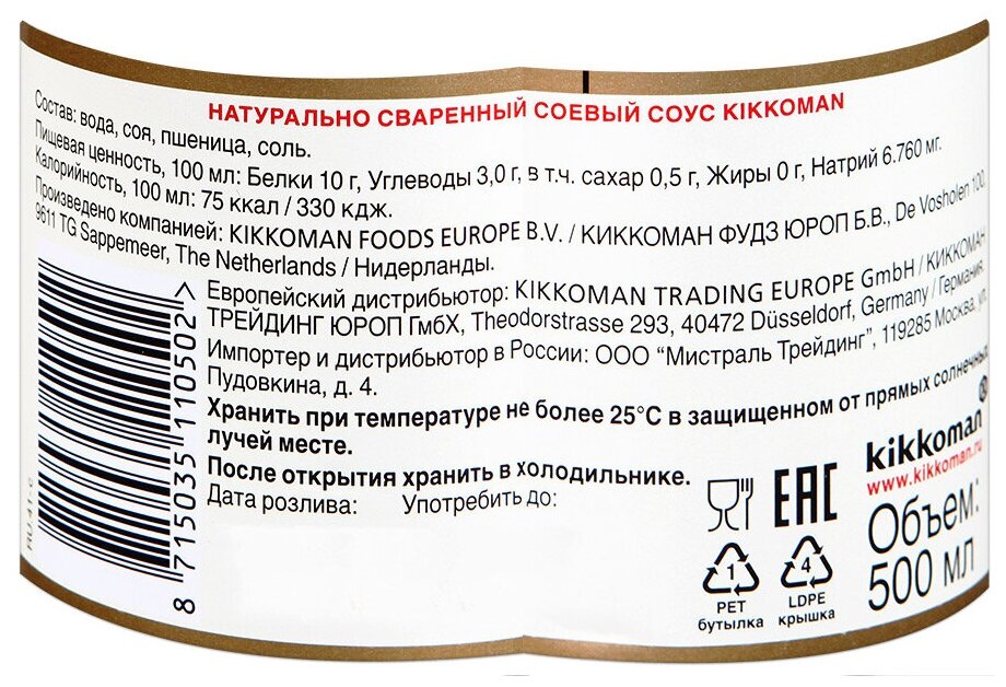 | Изготовитель | Kikkoman Foods Europe B.V. , Нидерланды, Нидерланды |