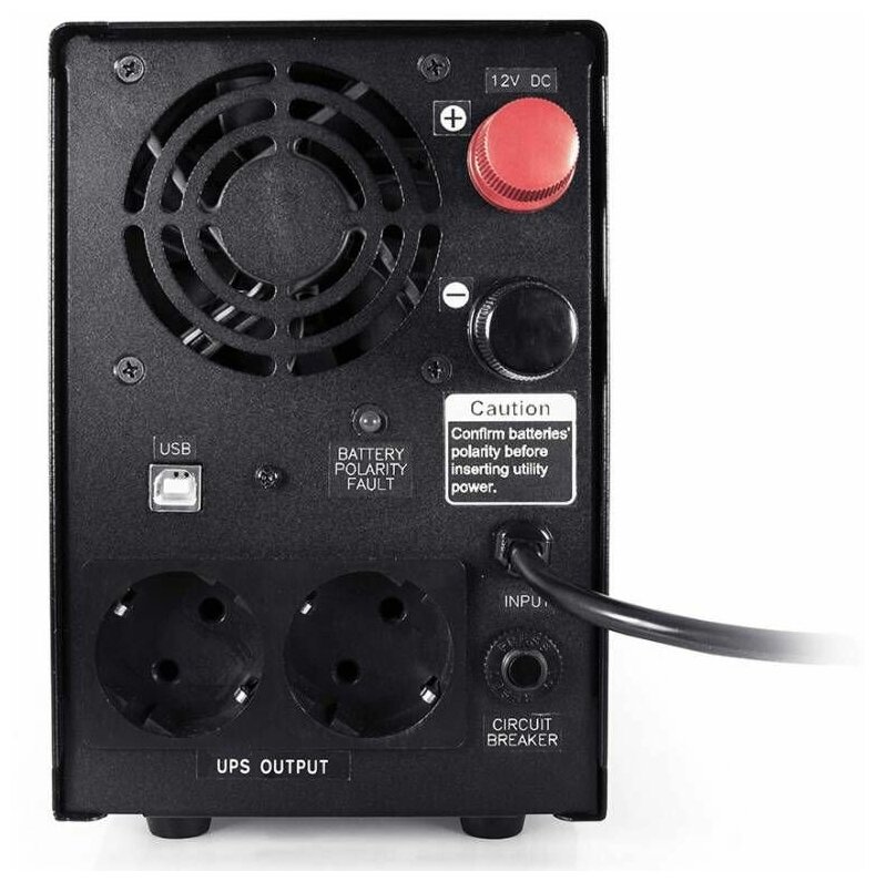 | Особенности | AVR, автотрансформатор, автоматическое самотестирование, микропроцессорное управление, обеспечение большого времени автономии за счет подключения внешних 12В батарей |