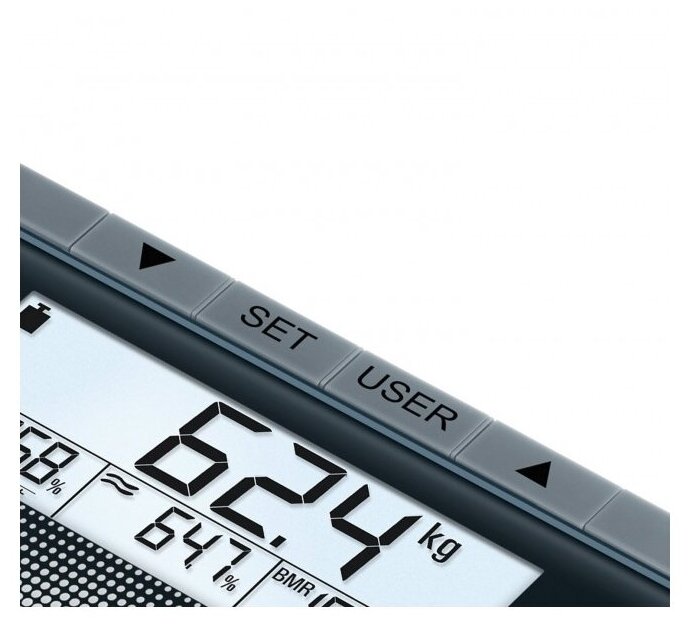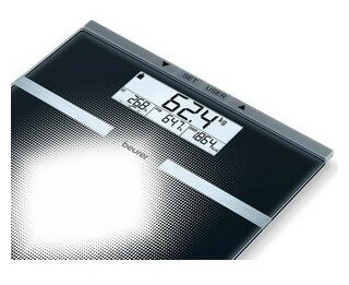 Beurer автоматически включаются и выключаются. Весы запоминают данные 10 пользователей. Помимо массы тела эти весы позволяют измерять содержание воды в организме, процентное соотношение жировой, мышечной и костной ткани, рассчитывать индекс массы тела.