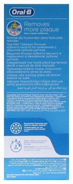 Щетинки насадки расположены таким образом, чтобы очищать даже труднодоступные места. Они мягко удаляют налет, не повреждая эмаль. Прибор работает в одном режиме — ежедневной чистки. Другие параметры: