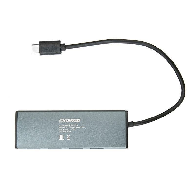USB-концентратор Digma HUB-4U3.0-UC-G, разъемов: 4