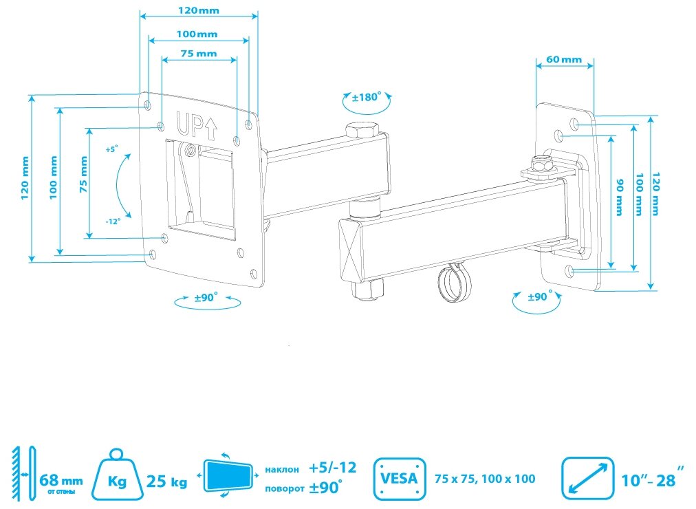 | Диагональ телевизора, дюйм | 10-28 |