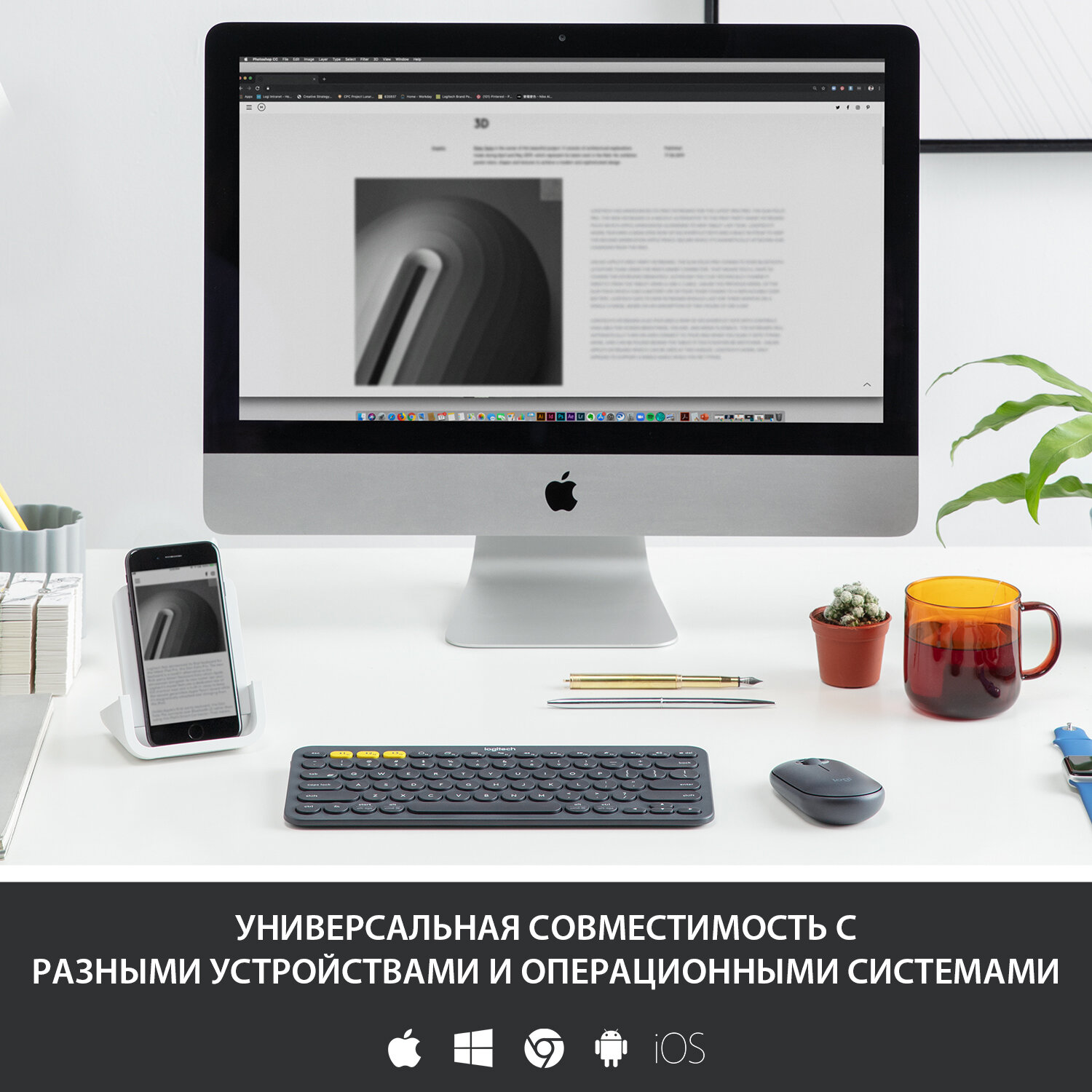 Это продуманное до мелочей устройство с ультратонким профилем идеально подходит для ввода текста на компьютере, смартфоне, планшете и т. д. Logitech K380