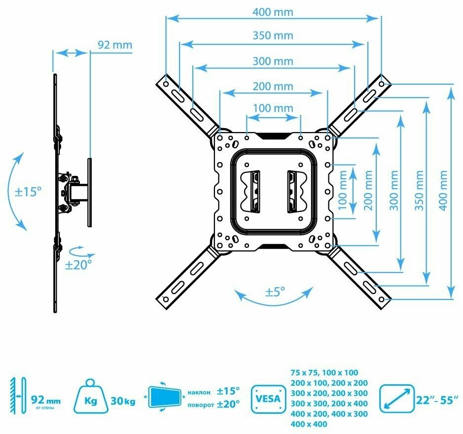 | Расстояние от стены (потолка) | 92 мм |