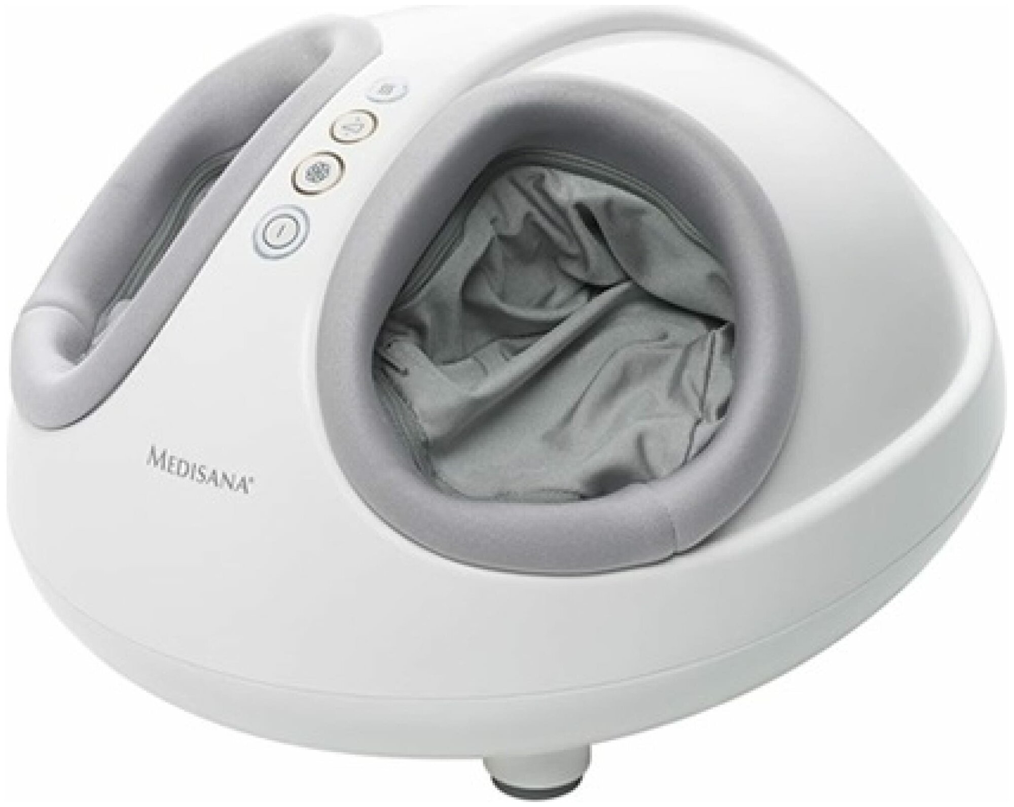 | Прочие особенности и свойства | Массажер для ног Medisana FM 888 прекрасно снимает усталость, избавляет от отеков, укрепляет иммунитет, дарит легкость и помогает бороться со стрессами. 2 массажные программы. Шиатсу массаж ступней и компрессионный массаж ног. 2 уровня интенсивности. |