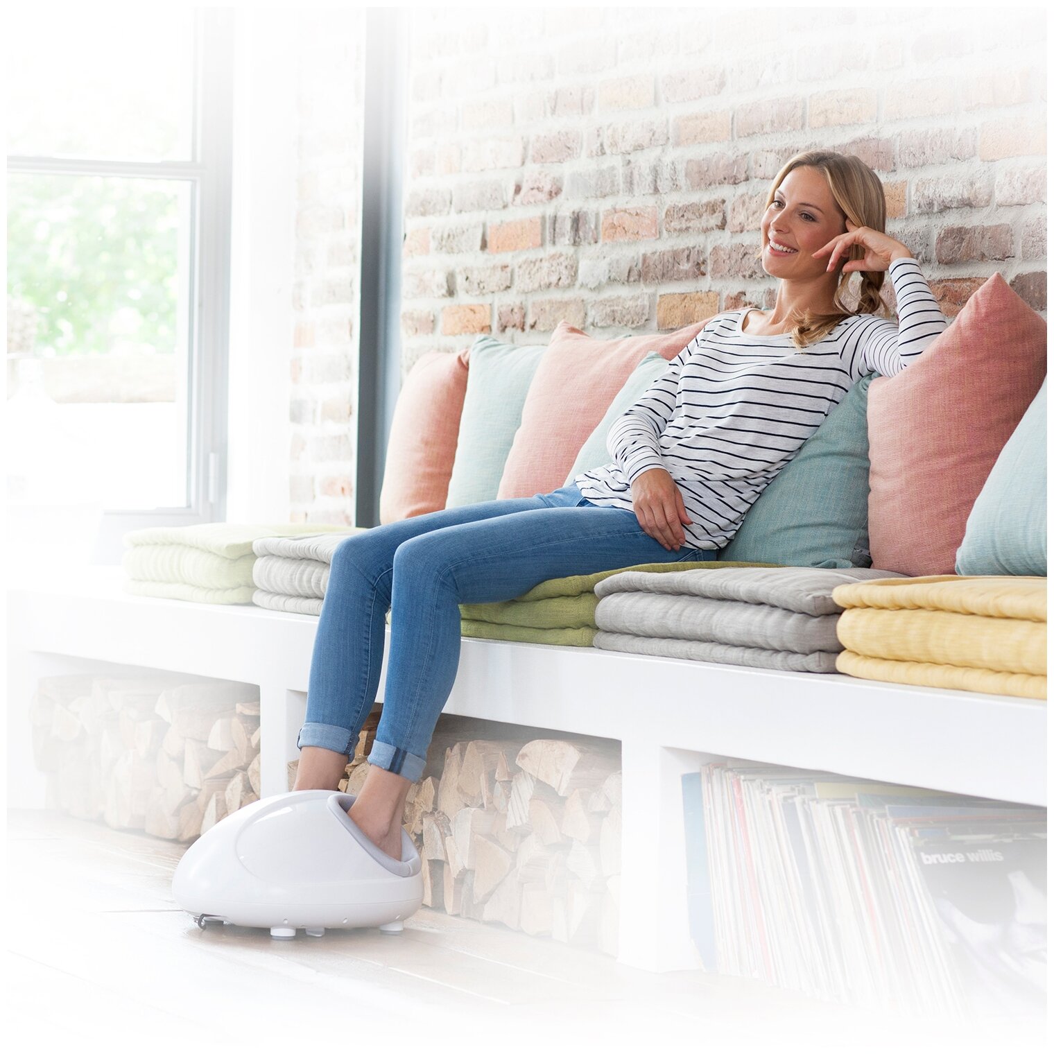 Массажер для ног Medisana прекрасно снимает усталость, избавляет от отеков, укрепляет иммунитет, дарит легкость и помогает бороться со стрессами. 2 массажные программы. Шиатсу массаж ступней и компрессионный массаж ног. 2 уровня интенсивности.