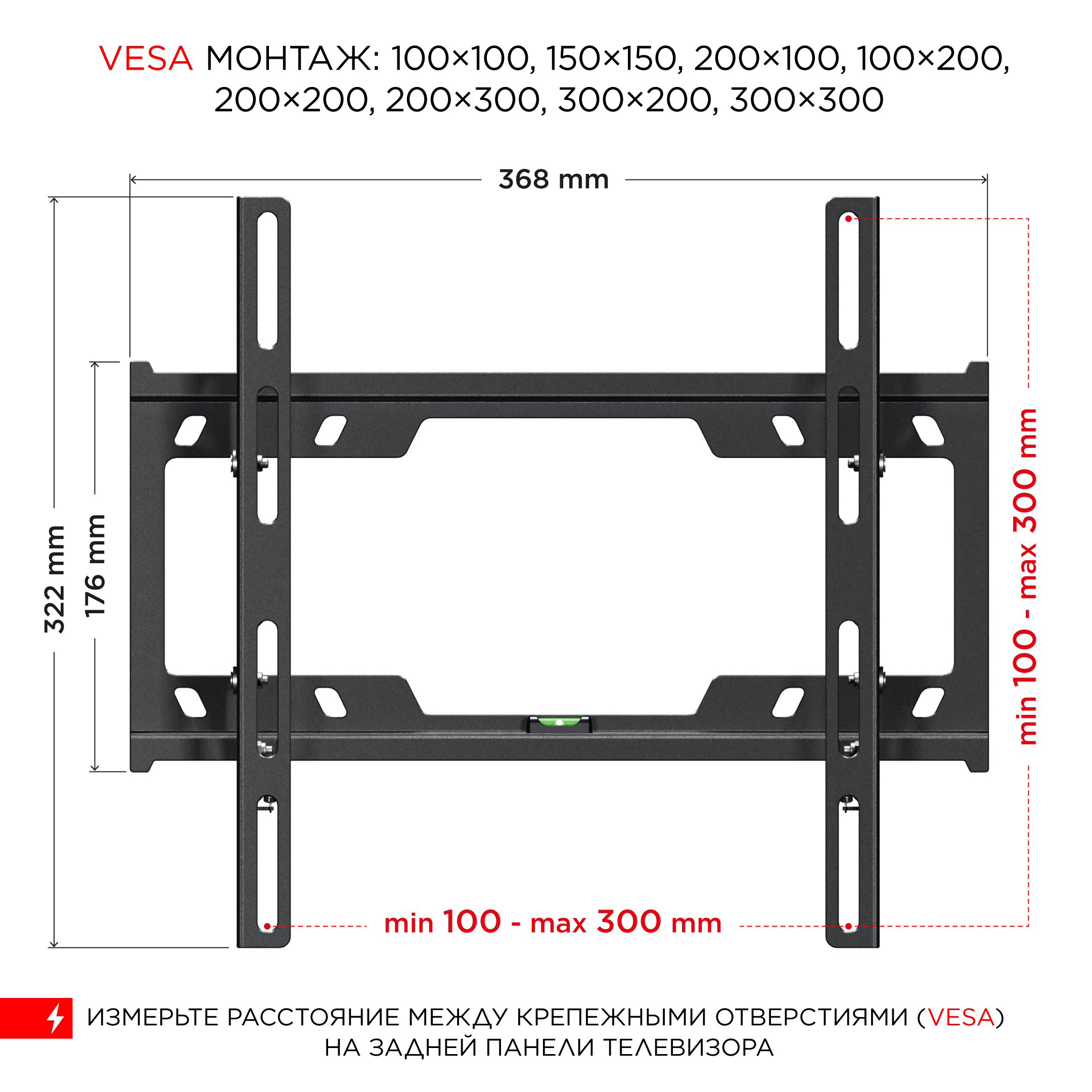 | Размер VESA | 100х100, 200х200, 200х100, 300х200, 200х300 |