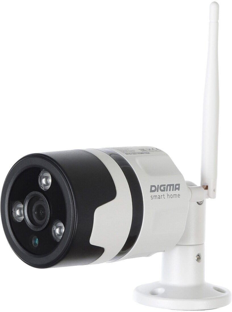 IP-камера Digma в черно-белом пластиковом корпусе подходит для установки на улице и в помещении: она может использоваться в доме, квартире, офисе, отеле. Модель управляется со смартфона: установите приложение для настроек и просмотра записи онлайн. Благодаря встроенному микрофону и динамику можно слышать, что происходит в помещении, и поддерживать разговор на расстоянии.