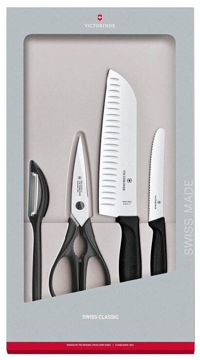 | Прочие особенности и свойства | Наборы кухонных ножей Victorinox – это изделия высокого качества, которые полностью отвечают всем требованиями международных стандартов.,Материал лезвий:сталь прокатная, молибден-ванадиевая (X50 Cr Mo V 15),Материал рукояти:полипропилен |