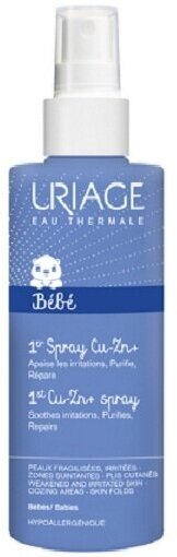 Абсорбирующая, асептическая, успокаивающая эмульсия. Специфический уход за кожей, склонной к раздражениям, атопии, для участков мацерации (опрелости), для складок кожи, при раздражении ягодичных зон. Спрей Cu- Zn + оказывает успокаивающее и противовоспалительное действие благодаря входящим в его состав комплексу TLR2-Regul, эксклюзивной разработке Лабораторий Урьяж, и термальной воде Урьяж. Обогащенный медью (Cu) и Цинк (Zn), оказывающими антибактериальное и оздоравливающее воздействие, смектитом, обладающим мощным абсорбирующим действием, спрей быстро восстанавливает гидролипидную пленку и обеспечивает коже комфорт.