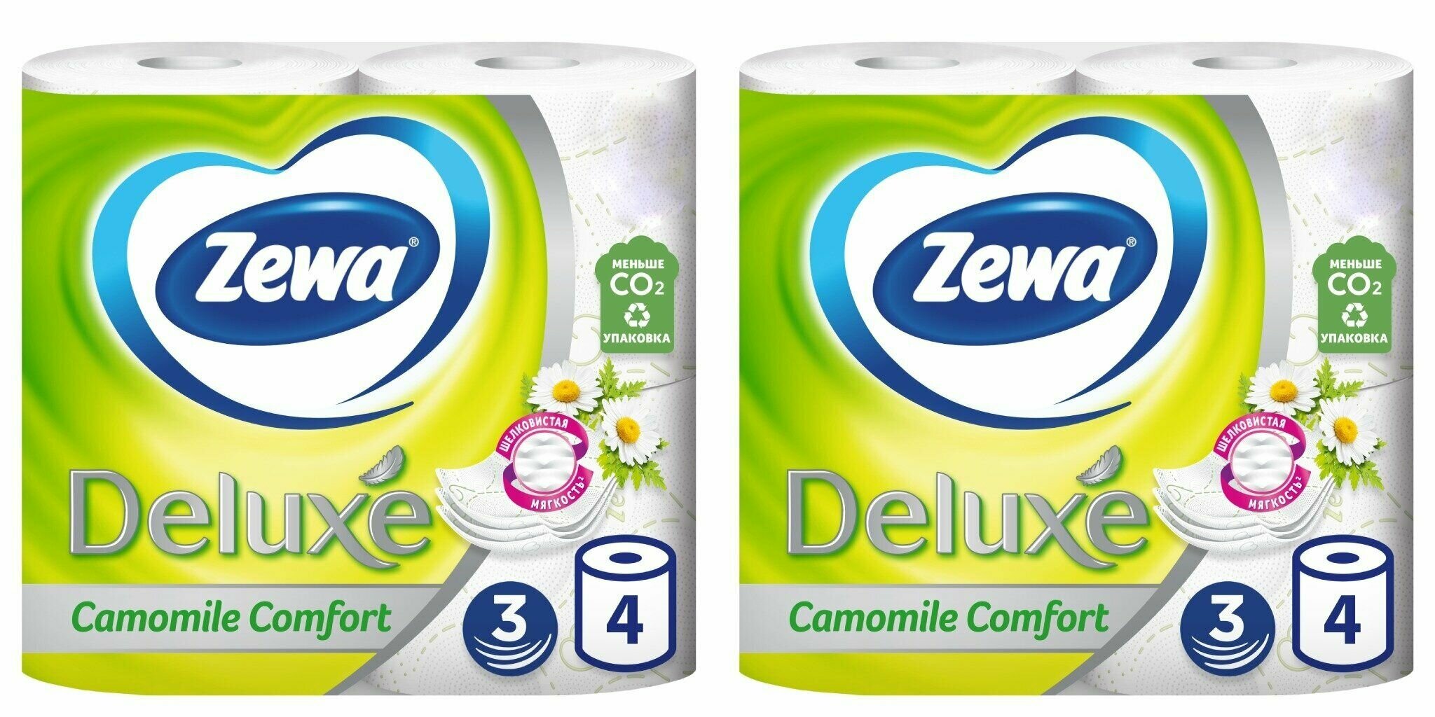 Трехслойная ароматизированная туалетная бумага Zewa Deluxe белого цвета с зеленым тиснением и перфорацией, с ароматом ромашки. Zewa Deluxe с впитывающими 'подушечками' деликатно очищает и нежно заботится о вашей коже. Мягкость, Забота, Комфорт — вашей коже это понравится.