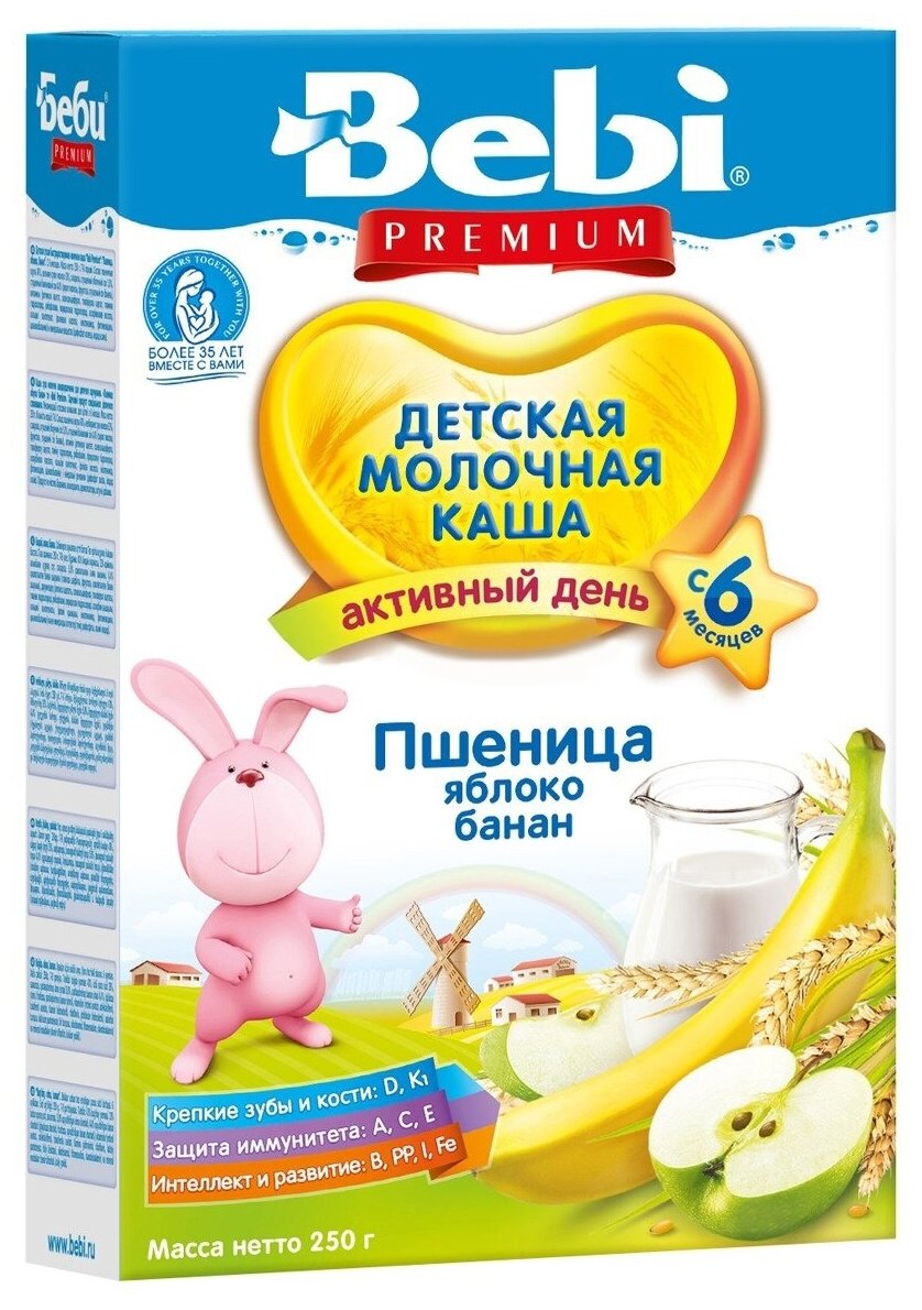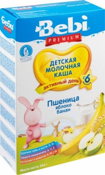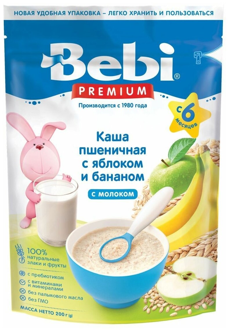 - Каша Bebi Premium Молочная пшеница яблоко банан, с 6 мес