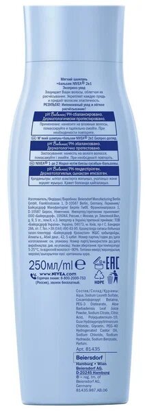 Шампунь-ополаскиватель 2 в 1 Nivea Экспресс-уход 250 мл (81435)