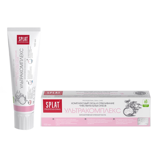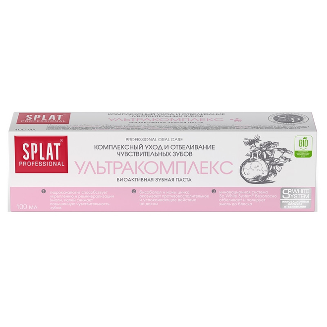 - Зубная паста комплексного ухода, отбеливания зубов SPLAT Professional Ультракомплекс 100 мл