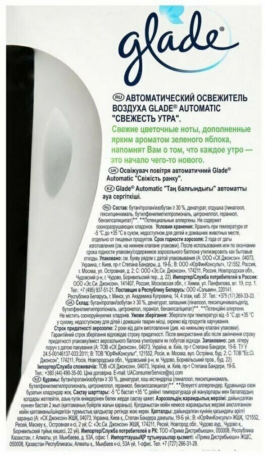 Сервис сравнения цен СкидкаГИД предлагает сравнить цены на товар «Автоматический освежитель воздуха Glade 3 в 1 Свежесть утра 270 мл»