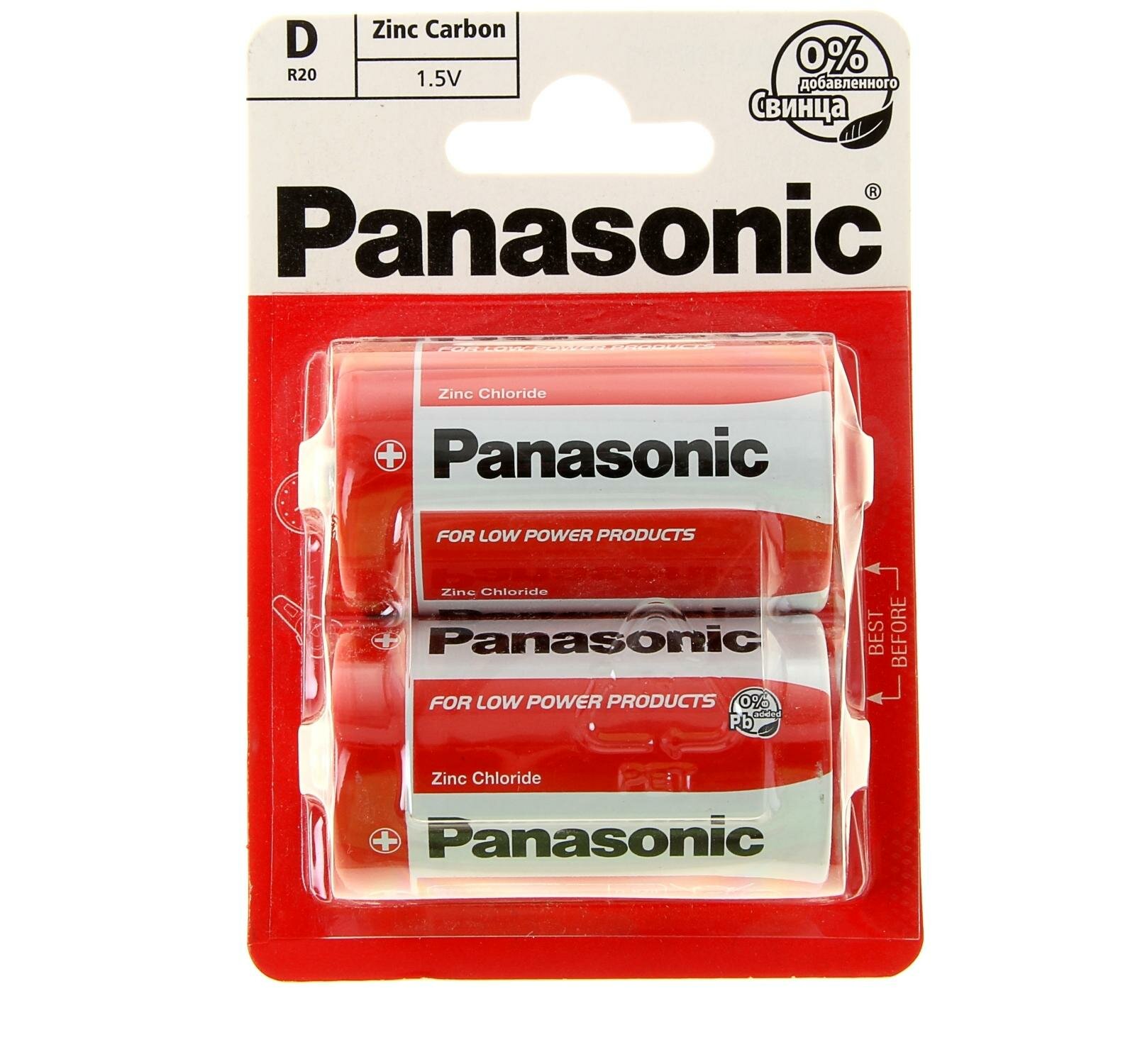 Батарейки Panasonic Red Zink D (R20) - серия экономичных и надежных солевых батареек для повседневных устройств с низким уровнем потребления энергии: электронные весы, часы, пульты ДУ.
