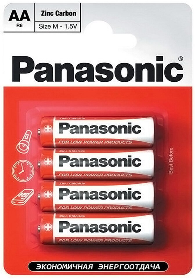 Батарейки Panasonic Red Zink R6 Bli Zink-Carbon 4 шт. (R6REL/4BPR) 166
