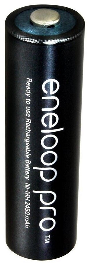 PANASONIC Eneloop PRO с емкостью не менее 2450mAh особенно хорошо подходят для устройств с высоким энергопотреблением, таких как фотовспышки, фотоаппараты, фонари, радиоуправляемые модели, игрушки. Благодаря низкому саморазряду PANASONIC Eneloop PRO сохраняют до 85% своей емкости даже после 1 года хранения. PANASONIC Eneloop PRO можно перезаряжать минимум 500 раз.