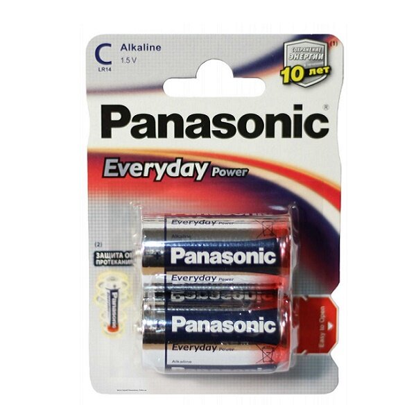 Батарейки Panasonic Everyday Power C щелочные 2 шт Щелочные батарейки Everyday Power для бытовых устройств с высоким и средним уровнем потребления энергииПреимущества продукта:- Стандартная серия щелочных батареек Panasonic.- Улучшенная производительность до 50% по сравнению с предыдущим поколением щелочных батареек1- Лучшие показатели по защите от протекания среди конкурирующих брендов2- Надежная энергоотдача для устройств с высоким и средним уровнем потребления энергии.- Великолепное соотношение цены и качества.- Срок хранения до 10 лет.
