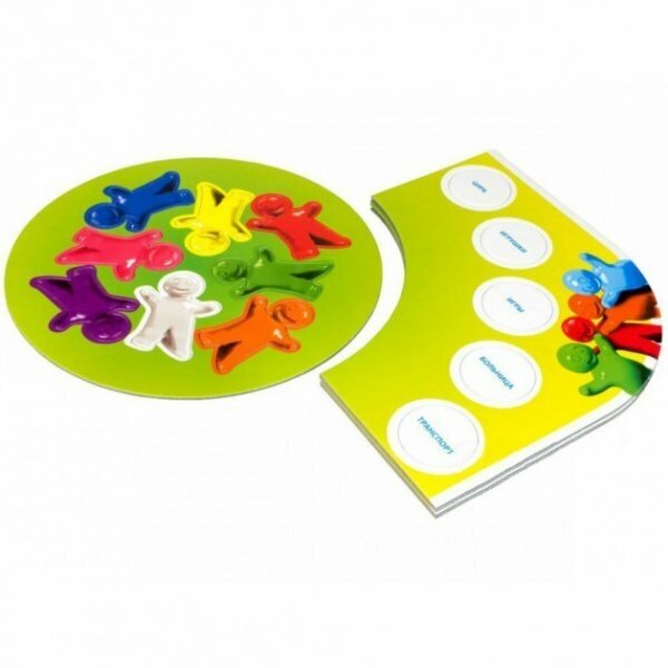 | Комплект игры | игровое поле, чаша для кубиков, 7 кубиков с буквами и 1 без букв («джокер»), 19 дисков категорий слов, 8 фигурок, 8 цветных жетонов (картонных человечков), инструкция |