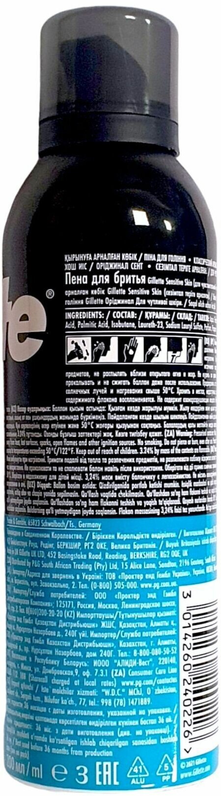 - Пена для бритья "Gillette" "Sensitive Skin" для чувствительной кожи. Разбор вредности состава.