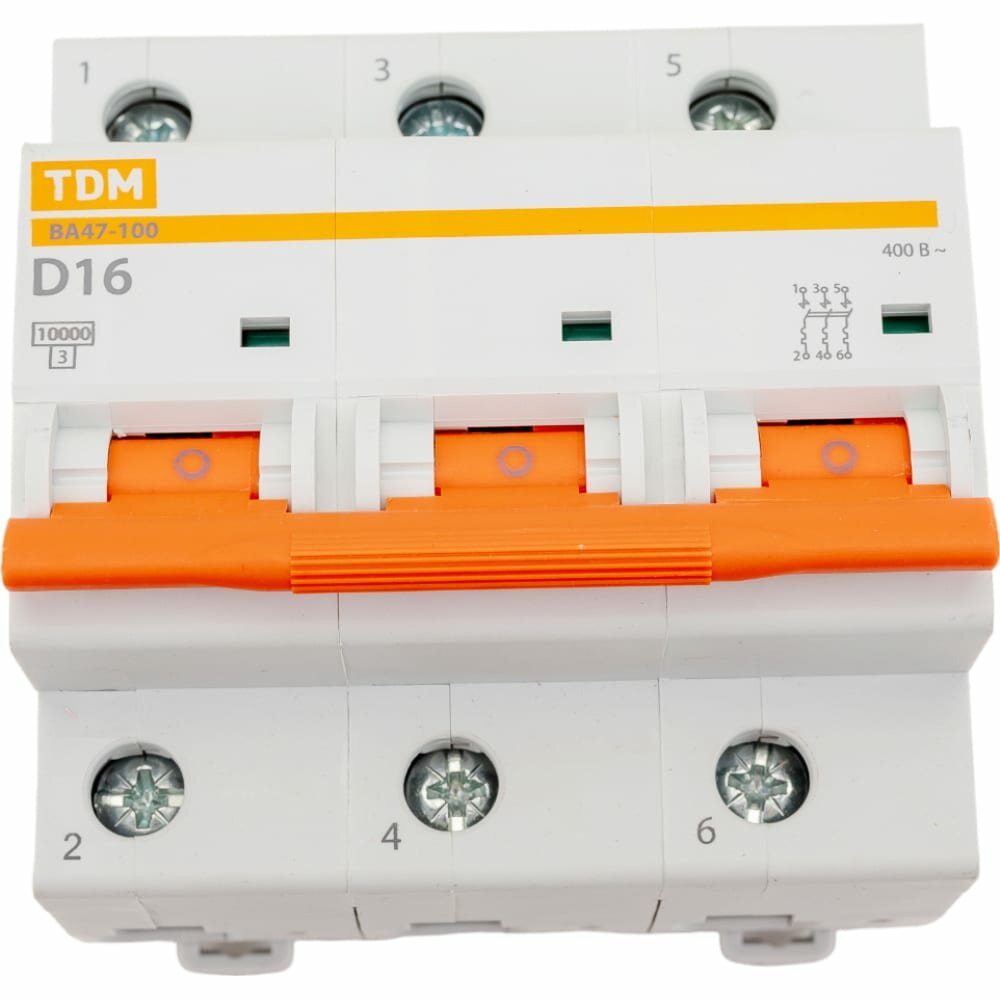 Автоматический выключатель TDM ВА47-100 3Р 16А 10кА D обеспечивает проведение тока в нормальном режиме. Конструкция устройства предусматривает два типа защиты распределительных и групповых цепей: от перегрузки и короткого замыкания.