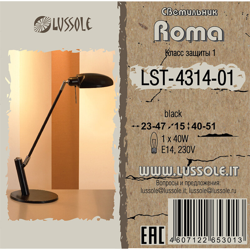 Настольная лампа Lussole Roma – это современное и комфортное решение для офисного работника. Устойчивая подставка и высокая ножка позволят удобно разместить светильник и качественно осветить площадь рабочего стола. Вращающиеся части позволяют наклонить его под нужным углом.