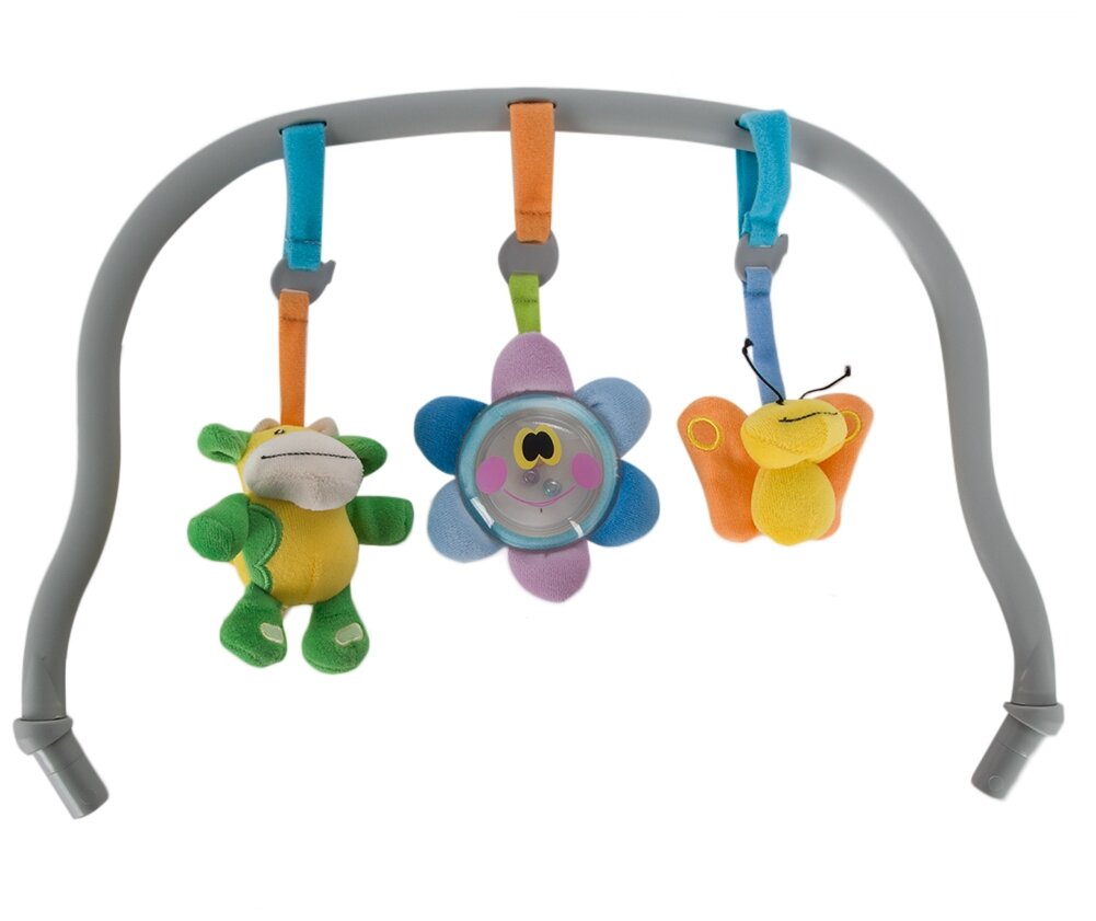 Игровой модуль для развлечения и развития малыша. Совместим с детским стульчиком Tatamia Follow Me. Состоит из тонкой накидки на имеющийся чехол стульчика и пластиковую дугу с игрушками Представлен в трех ярких цветовых решениях.