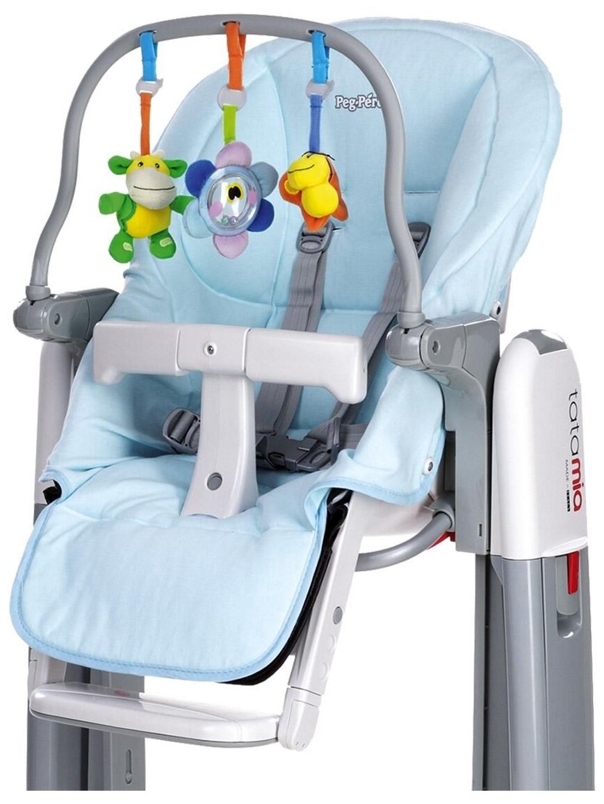 Игровой модуль для развлечения и развития малыша. Совместим с детским стульчиком Tatamia Follow Me. Состоит из тонкой накидки на имеющийся чехол стульчика и пластиковую дугу с игрушками Представлен в трех ярких цветовых решениях.