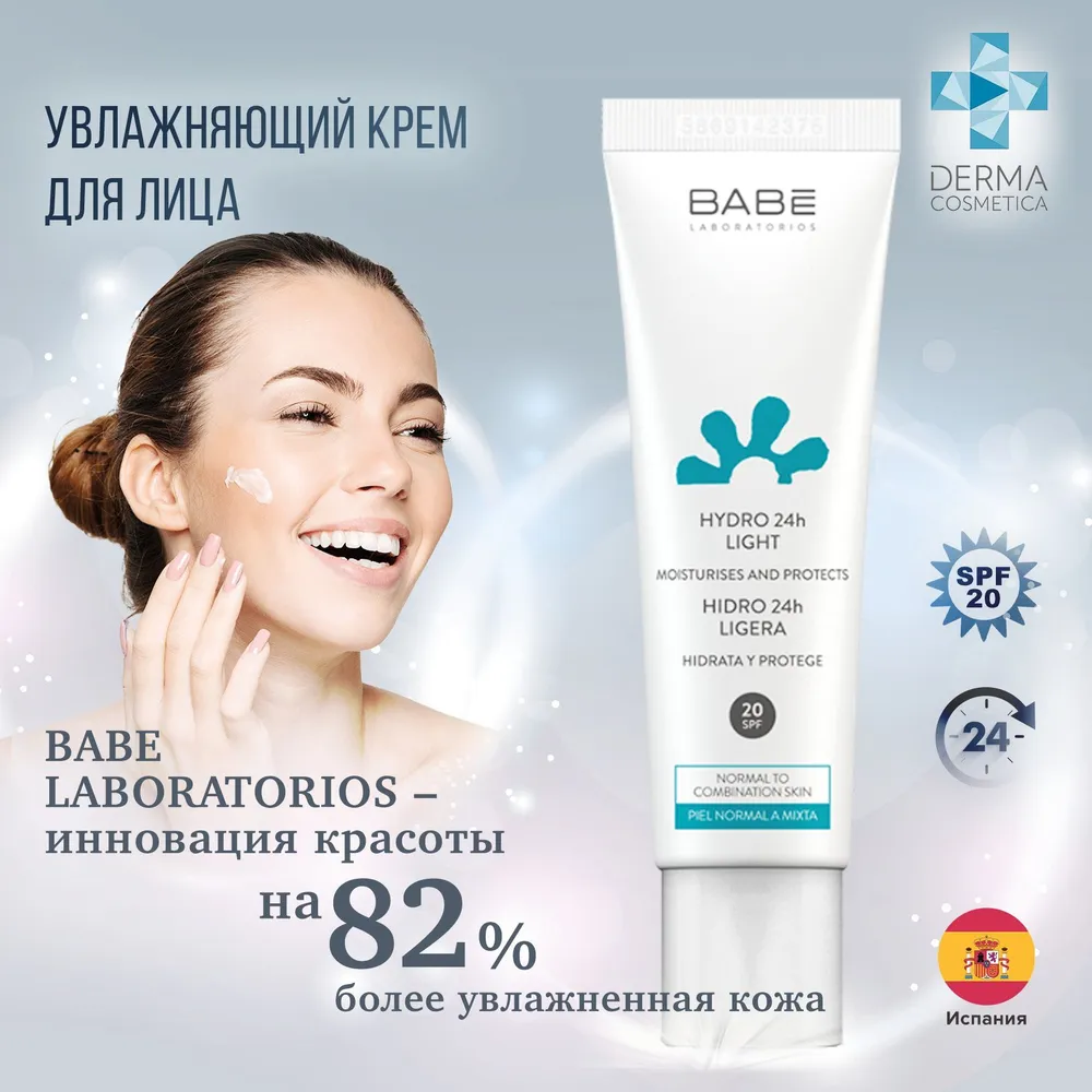 Легкий крем Babe Laboratorios 24 часа увлажнения с SPF 20 для любого типа кожи 50 мл