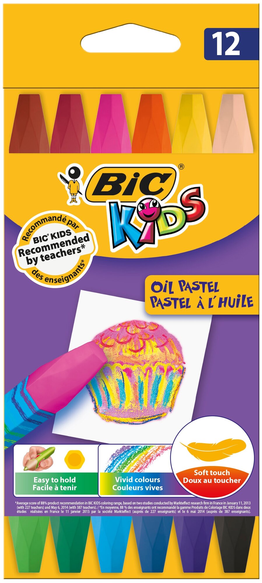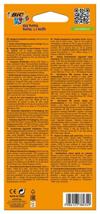 Со времени создания классической шариковой ручки ещё в 1950 году Bic значительно расширила ассортимент, предлагая не только пишущие инструменты, но и принадлежности для рисования и творчества. В каждом ребёнке живёт настоящий художник, и дети по достоинству оценят набор из 12 цветных мелков Bic , который поможет им выразить творческую натуру и развить художественный талант. Эти масляные цветные мелки созданы с заботой о детских ручках - легко держать и рисовать ими. Благодаря формуле на основе воска мелки легко скользят по бумаге. Родителям понравится защитная бумажная обёртка на корпусе, ведь она позволяет сохранять ручки чистыми и поддерживать порядок вокруг. Рисунки, вывески, плакаты, праздничные открытки - все творческие замыслы можно воплотить в жизнь с этим чудесным набором детских мелков. И вишенка на торте - они соответствуют самым строгим стандартам безопасности.