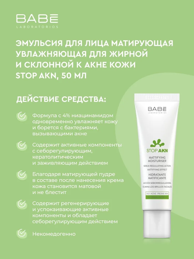 На сегодняшний день товар «Увлажняющий крем для лица Babe Laboratorios Stop AKN Матирующий 50 мл» можно купить с кешбеком в 2 магазинах: Cdek.shopping, Яндекс.Маркет