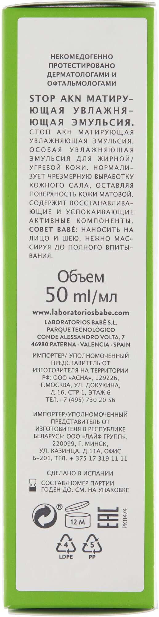 Увлажняющий крем для лица Babe Laboratorios Stop AKN Матирующий 50 мл