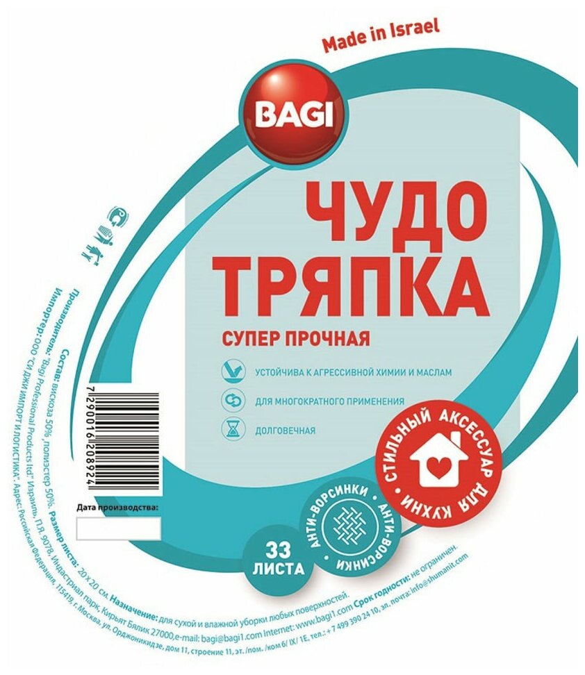 На сегодняшний день товар «Салфетка Bagi Супер Прочная для всех видов поверхностей 33 шт. 1015024129» можно купить с кешбеком в 1 магазине: Яндекс.Маркет