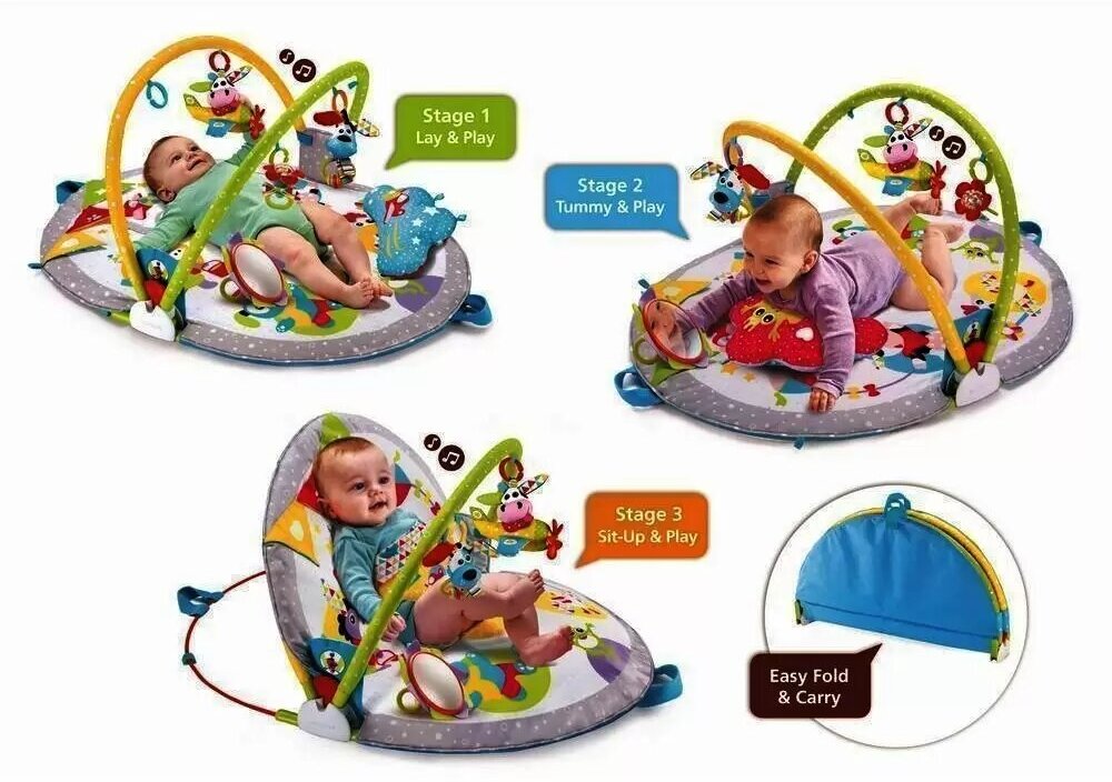 Очень понравился коврик, отличного качества, разнообразные игрушки и с зеркалом, и музыкальный самолет, и фактур разных много. А то что разные положения можно принимать - супер! Малышу нравится, в 2,5 месяца уже интересно пытаться трогать, смотреть и слушать шум игрушек.