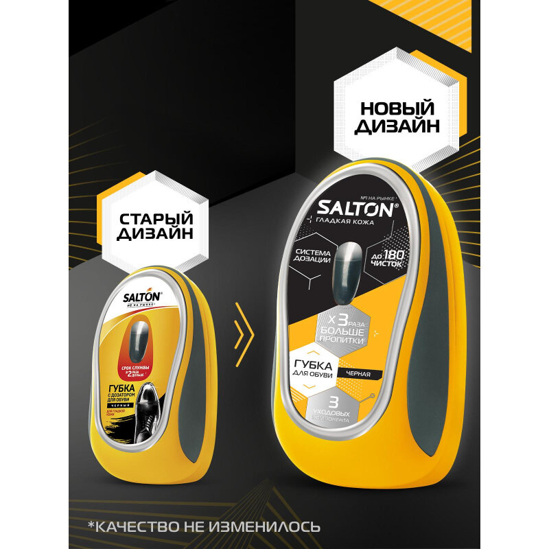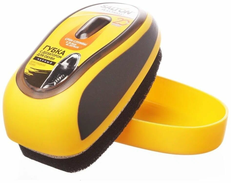Качественная поролоновая губка является незаменимым средством для экспресс-ухода за кожаной обувью. А если Вы цените не только качество, но и экономичность, то Вам непременно понравится губка с дозатором для обуви из гладкой кожи Salton. Губка с дозатором содержит дополнительный контейнер с силиконовой пропиткой, в который встроена система ее дозации, что позволяет экономно использовать это средство для обуви и увеличивает срок его службы. Доказано, что губка с дозатором Salton служит до 2-х раз дольше обычных губок. Губка имеет прочный пластиковый корпус и двухслойный поролон, который делает ее более упругой и не позволяет пластиковым краям корпуса касаться поверхности обуви. Благодаря пропитке с норковым маслом, губка для обуви с дозатором быстро и эффективно очищает кожаную обувь от пыли и легких загрязнений, придает ей блеск и освежает цвет. Губка для обуви черная подходит для любой кожаной обуви черного цвета. Подойдите разумно к ежедневному уходу за обувью с губкой с дозатором Salton.