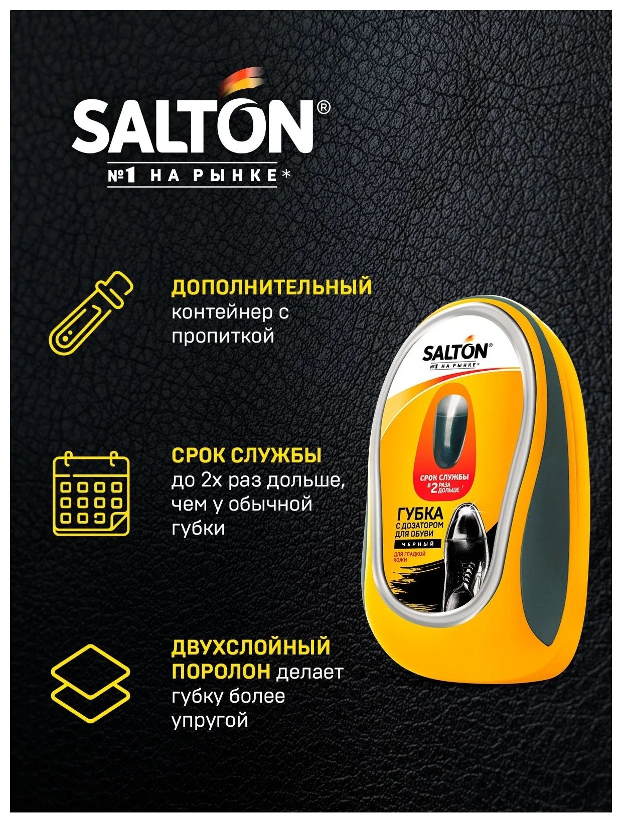 Губка Salton c дозатором для обуви из гладкой кожи черный (52/10)