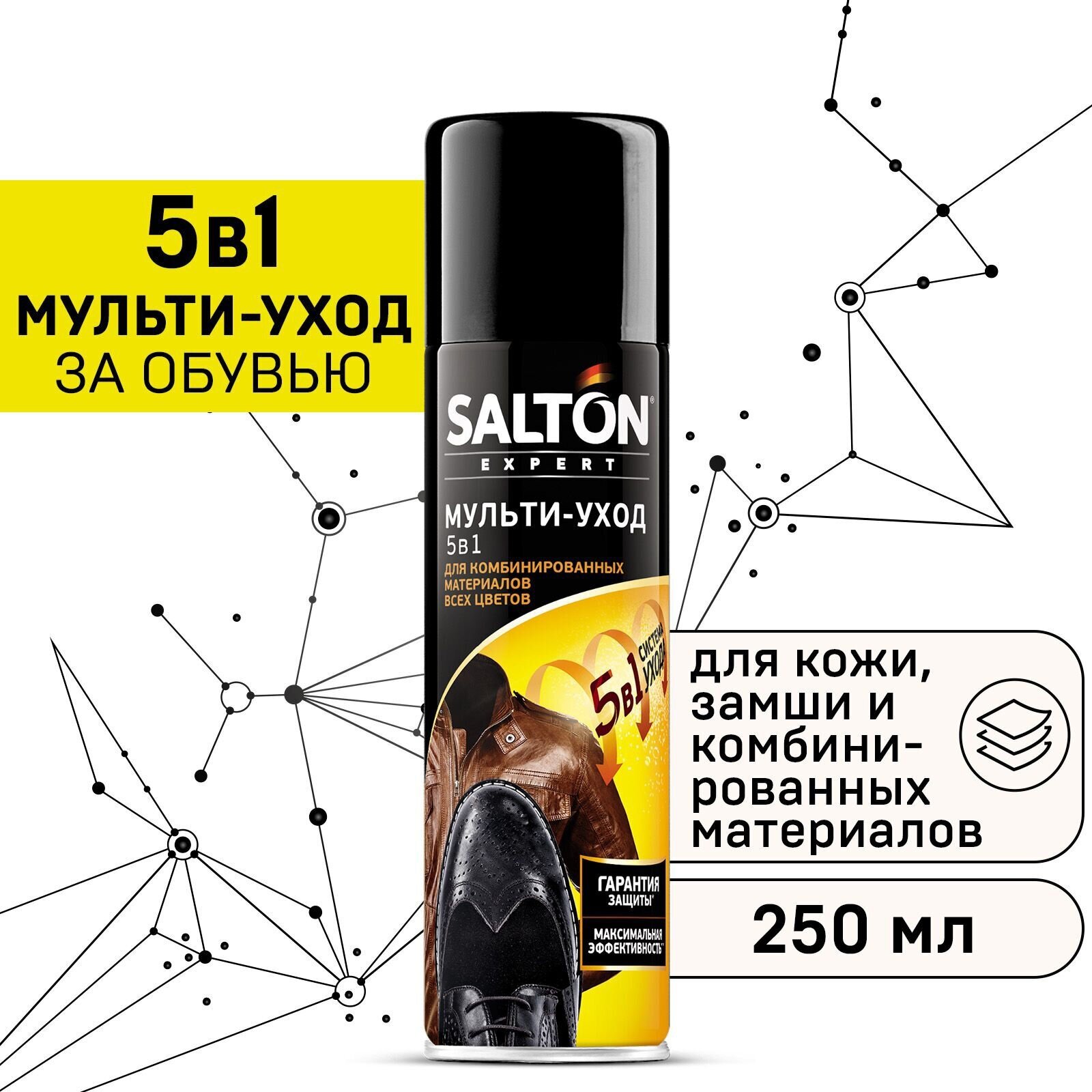 На сегодняшний день товар «Мульти-уход 5в1 Salton Expert для комбинированных материалов и замши 250 мл (52250)» можно купить с кешбеком в 1 магазине: Яндекс.Маркет