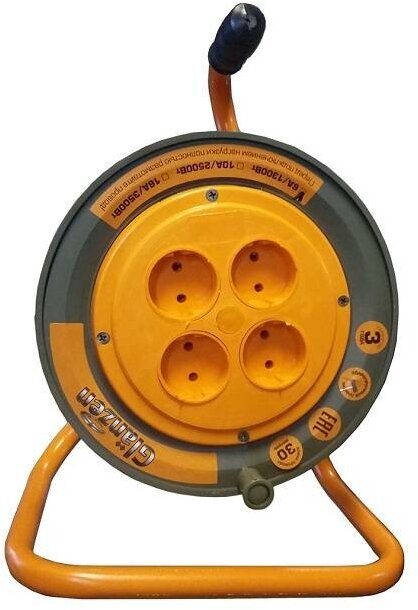 Силовой удлинитель на катушке GLANZEN ЕВ-50-003 50м 2х1мм 10А 2500Вт, 4 розетки