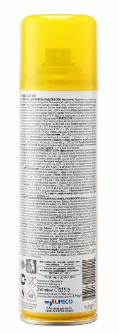 | Состав | миндальное масло, красители, силиконы, изопропанол, этилацетат, спирт этиловый денатурированный, углеводородный пропеллент (пропан, бутан, изобутан). |