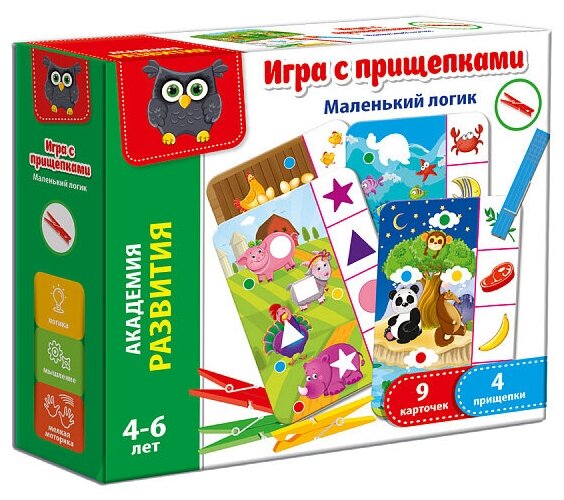 | Комплектация | карточки - 9 шт; прищепки - 4 шт; инструкция - 1 шт |