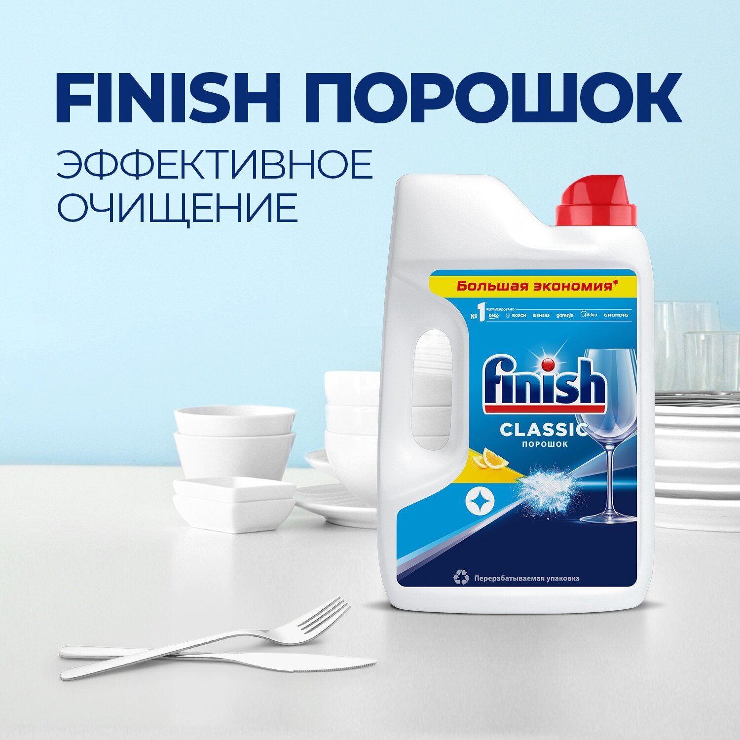| Описание | Порошок для посудомоечных машин Finish Classic - это идеально чистая посуда раз за разом. Пригоревший жир от приготовления пищи, миски из-под хлопьев или грязные кастрюли - порошок для посудомоечных машин Finish придет на помощь в любой ситуации! |